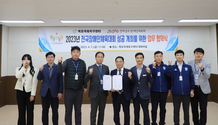 [전남=프레스뉴스] 이광남 기자= 목포국제축구센터(센터장 이경훈)와 전라남도장애인체육회(상임부회장 박정현)는 지난 7일 목포국제축구센터에서 2023년 제43회 전국장애인체육대회 성공개최 지원체계 구축을 위한 업무협약식을 체결했다.