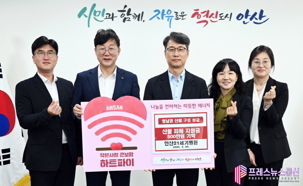 [프레스뉴스] 장현준 기자= 안산시(시장 이민근)는 지난 24일 안산21세기병원(원장 김재현)으로부터 영남 지역 산불 피해 복구를 위한 성금 500만 원을 기탁받았다고 25일 밝혔다.