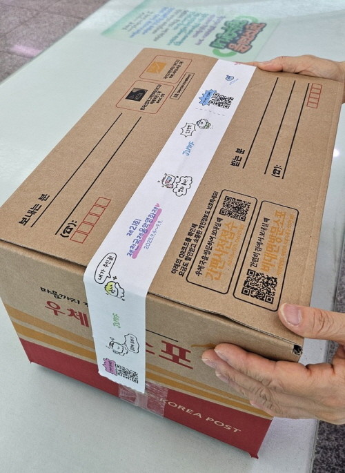 ▲제천시 하반기 축제 홍보를 위한 우체국 택배포장 테이프 배포 |