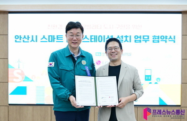 [프레스뉴스] 장현준 기자= 안산시(시장 이민근)는 사회적 문제로 떠오르고 있는 공유형 이동장치의 무분별한 주차 문제 해소를 위해 ㈜LG전자 커런트닷컴퍼니(대표 도원동)와 ‘스마트 개인형 이동장치 전용주차장(PM 스테이션) 설치·운영’ 협약을 체결했다고 25일 밝혔다.