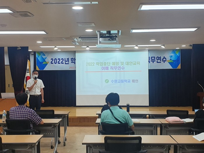 [광주=프레스뉴스] 강래성 기자= 광주시교육청이 8일 광주교육연구정보원 소강당에서 ‘2022 학업중단 예방 및 대안교육의 이해 직무연수’를 개시했다.