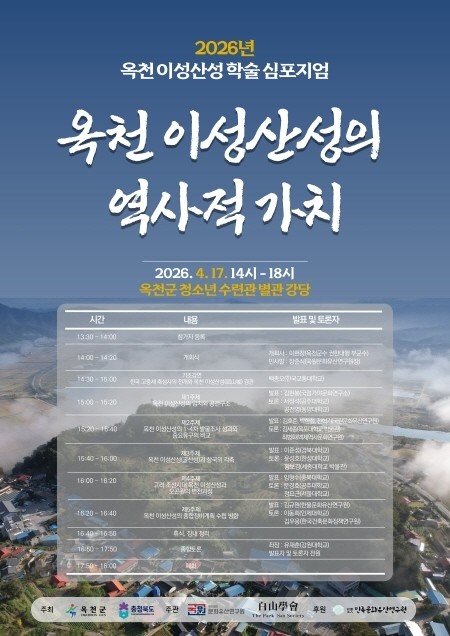 행사는 백종오 한국교통대학교 교수의 ‘한국 고·중세 축성사의 전개와 옥천 이성산성 경관’의 기조강연으로 문을 연다. 이어지는 주제 발표에서는 ▲이성산성의 입지와 공간구조(김현봉, 국립가야문화유산연구소) ▲1~4차 발굴조사 성과와 중요유구의 비교 검토(김호준 외, 국원문화유산연구원) ▲이성산성과 삼국의 각축(이준성, 경북대학교) ▲고려·조선시대 이성산성과 오곤원의 변천과정(임형수, 충북대학교) ▲이성산성 종합정비계획 수립 방향(김규원, 한울문화유산연구원) 등이 차례로 발표된다.