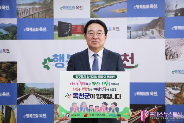 [프레스뉴스] 류현주 기자= 충북 옥천군이 저출생, 고령화 등 인구문제에 대한 사회적 관심을 환기하기 위해 ‘인구문제 인식 개선 릴레이 캠페인’에 참여했다. 이 캠페인은 보건복지부와 한국보건복지인재원이 공동으로 주관하며, 작년 10월 보건복지부 이기일 제1차관을 시작으로 현재까지 이어오고 있다.