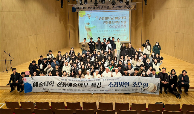 | ▲진도문화도시센터가 우리 군 민속문화의 가치를 널리 알리기 위해 중앙대 예술대학에서 진도의 서화, 소리 명인 특강을 진행했다.(사진제공=진도군) |