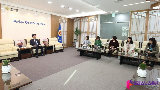 ▲ 염종현 경기도의회 의장이 지난 9일 의장 접견실에서 ㈔한국숲유치원협회 경기지회 관계자들과 면담을 하고 있다. (사진=경기도의회) |