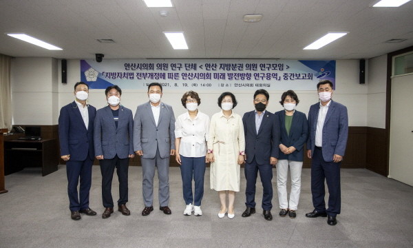 [프레스뉴스] 김대일 기자= 안산시의회 의원연구단체 ‘안산 지방분권 의원 연구모임’(대표의원 나정숙)이 최근 ‘지방자치법 전부개정에 따른 안산시의회 미래 발전방향 연구용역’의 중간보고회를 개최했다.