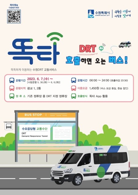 [프레스뉴스] 김대일 기자= 원하는 시간에, 원하는 장소에서 탑승해 원하는 목적지로 이동할 수 있는 신개념 교통수단 ‘똑버스’가 수원 광교 1·2동 전역에서 운행을 시작한다.