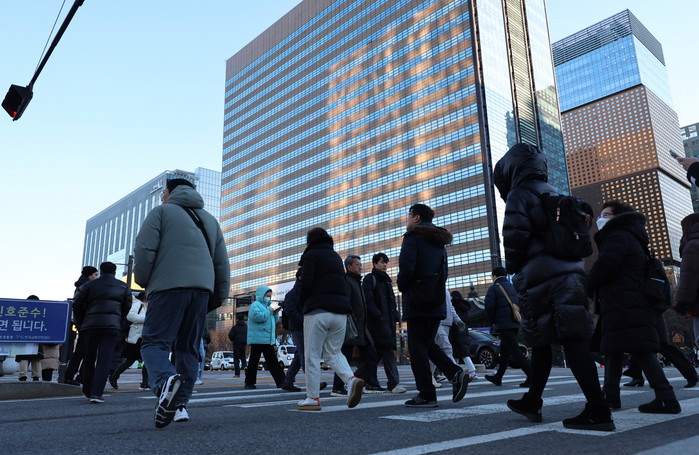 | ▲수도권 최저기온이 영하권을 보인 30일 오후 서울 광화문네거리에서 추위에 움츠린 시민들이 출근길 발걸음을 옮기고 있다./사진-뉴스1 |