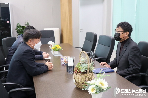[프레스뉴스] 김대일 기자= 경기도의회 교육행정위원회 남종섭 위원장(더민주, 용인4)은 3일 교육행정위원장실에서 전국교직원노동조합 경기지부 정진강 지부장과 면담하고, 코로나 대유행 속에서도 전면 개학한 학교가 처한 어려움 등 다양한 경기교육 현안에 대해 논의했다.