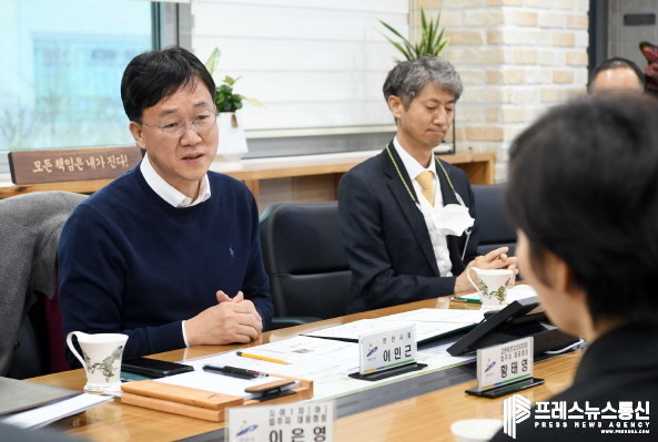 | ▲ 이민근 시장이 지난 28일 안산시청에서 버스 노선문제로 갈등을 빚고 있던 아파트단지 간 갈등을 중재하고 있다.(사진=안산시) |