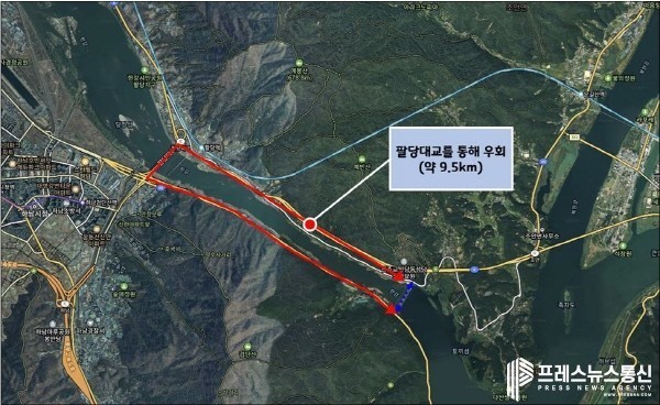인근 통행 차량이 팔당댐 관리교(댐 상부)를 이용하지 않고 한강을 건너려면 9.5km 우회로 팔당대교를 이용해야 한다.
