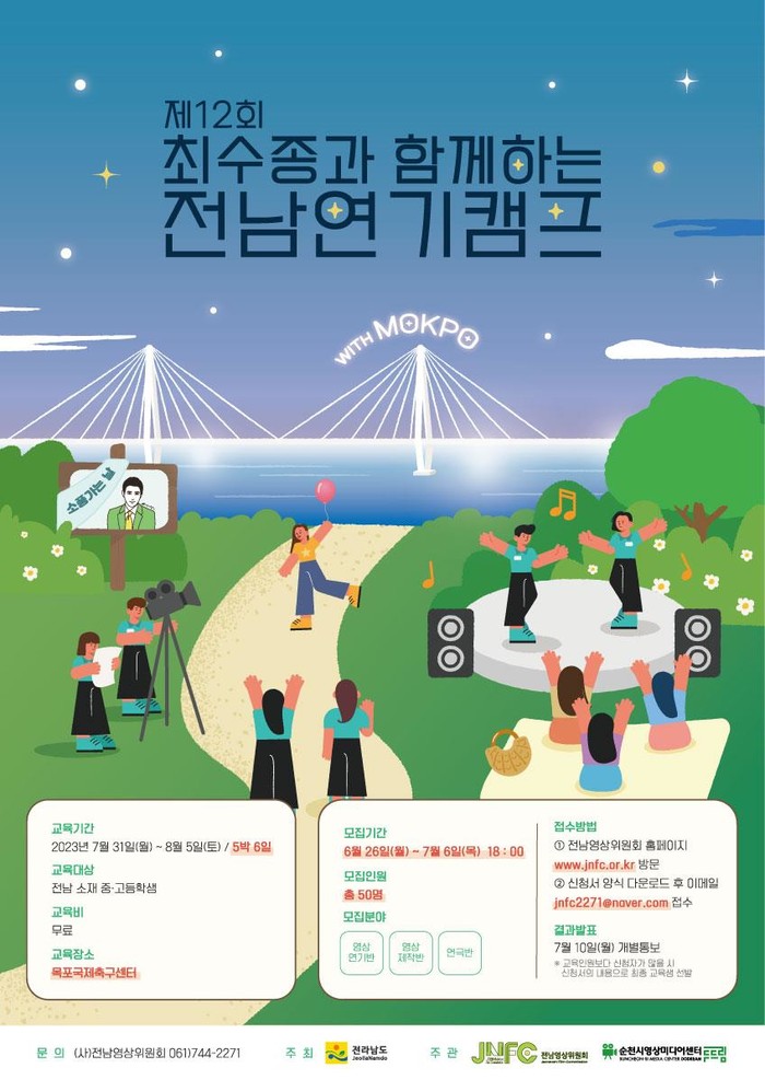 캠프는 7월 31일부터 8월 5일까지 5박 6일간 목포국제축구센터에서 진행되는데, 마지막 날은 학부모와 영상산업 관계자가 초청돼 발표회가 열릴 예정이다.