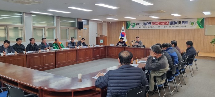 엄다면 김교성 번영회장을 대표로 새로 정비된 엄다면 지역자율방재단은 총 19명으로 구성됐으며 각종 재난 발생이 예상될 때 사전에 투입돼 인명피해 우려 지역 예찰활동, 재해 취약지 점검, 주민대피 홍보 등에 힘쓴다.