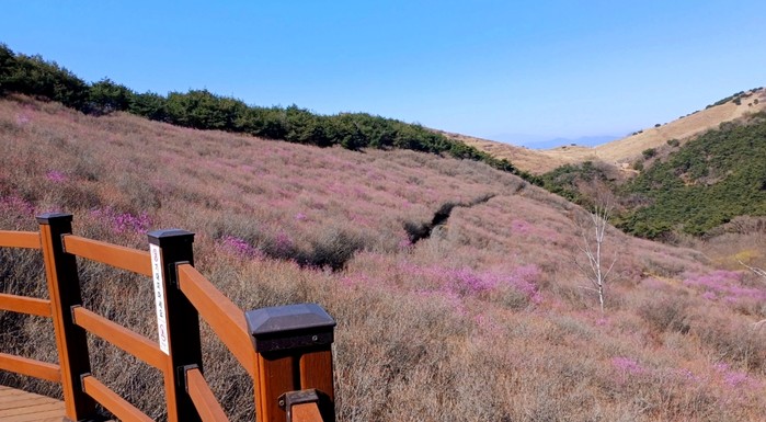 ▲창녕군은 화왕산 군립공원에 진달래가 개화를 시작함에 따라 등산객 맞이를 위한 준비를 마쳤다고 9일 밝혔다. (사진=창녕군) |