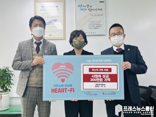 [프레스뉴스] 장현준 기자= 안산시(시장 이민근)는 지난 8일 가보 주식회사(대표 오승원)로부터 이웃사랑 성금 300만 원을 기탁받았다고 9일 밝혔다.