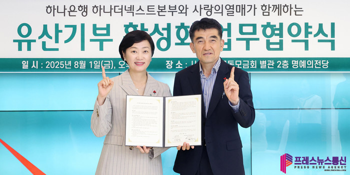 [프레스뉴스] 류현주 기자= 하나은행(은행장 이호성)은 사랑의열매 사회복지공동모금회(회장 김병준)와 유산 기부 활성화를 위한 업무협약(MOU)을 체결했다고 밝혔다.