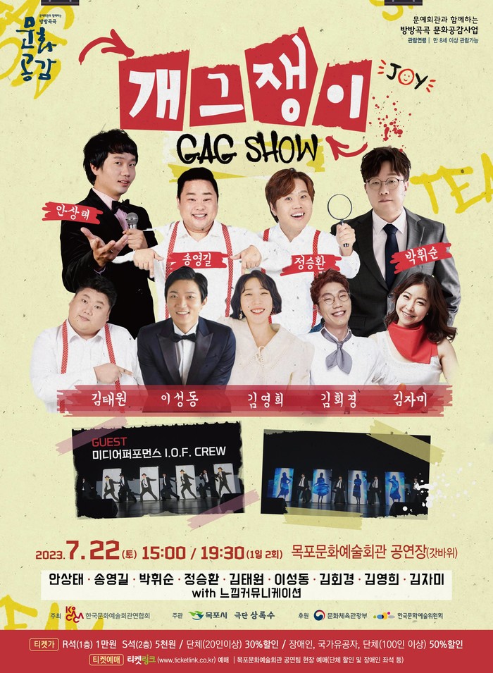 [전남=프레스뉴스] 이광남 기자= 전남 목포시가 시민들의 문화예술 향수권 신장을 위해 오는 7월 22일 오후 15:00, 19:30 2차례 목포문화예술회관에서 ‘개그쇼-개그쟁이’공연을 선보인다.