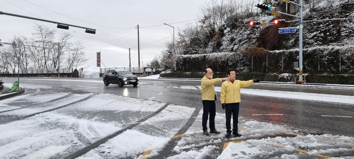 | ▲재해대비 종합대책 마련 (대설주의보 현장). 사진=진주시 제공 |