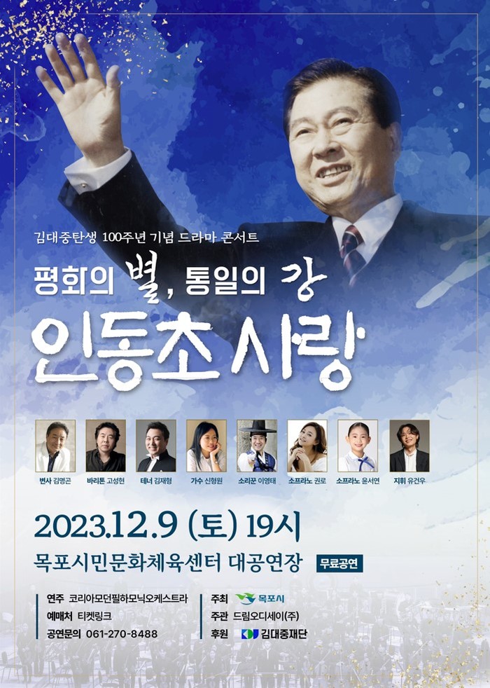 고 김대중 전 대통령의 탄생 100주년을 맞아 기획된 ‘드라마 콘서트’ 형식의 작품으로, 대통령의 일대기를 변사 김명곤 씨의 해설과 더불어 성악가 고성현, 김재형, 가수 신형원, 지역 출신 소리꾼 이영태 씨 등 다양한 장르의 예술가들이‘코리아 모던 필하모닉오케스트라’와 협연한다.