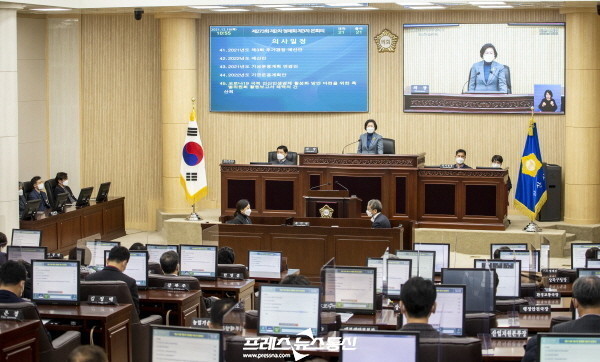 앞서 지난달 22일부터 안건을 심의해온 시의회는 이날 본회의에서 ‘2022년도 예산안’ 등 총 45건의 안건을 의결 처리했다.