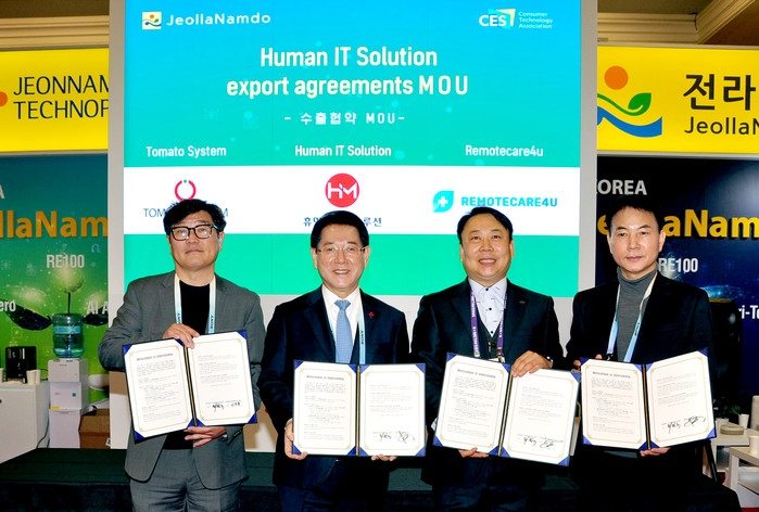 [전남=프레스뉴스] 강래성 기자= 김영록 전라남도지사가 미국 라스베이거스에서 열린 ‘소비자 전자제품 전시회(CES)’에서 미국 식품기업과 수출 확대를 위한 투자협약을 하고, 전남도의 글로벌 미래비전을 선포했다. 전남 혁신기업의 수출협약도 진행됐다.