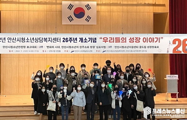 [프레스뉴스] 장현준 기자= 안산시(시장 이민근) 청소년상담복지센터는 개소 26주년을 기념해 지난 23일 안산시청소년지원센터 꿈드림(센터장 서은경)과 함께 청소년 안전망 보고대회 ‘우리들의 성장이야기’를 진행했다고 24일 밝혔다.