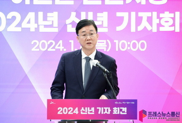 | ▲ 이민근 안산시장이 4일 오전 시청 제1회의실에서 2024 신년 기자회견을 하고 있다.(사진=안산시) |