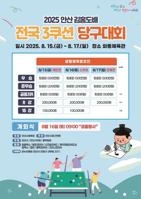 ▲2025 안산 김홍도배 전국3쿠션 당구대회 포스터(사진=안산시) |