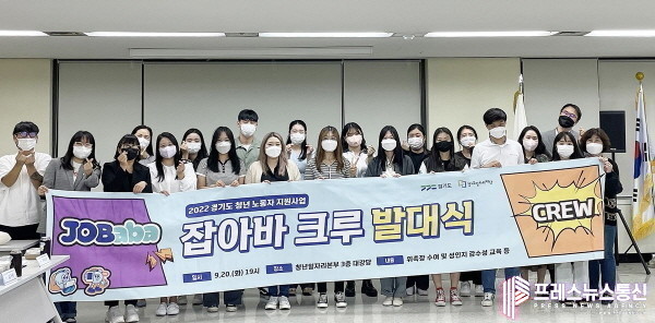 [프레스뉴스] 장현준 기자= 경기도일자리재단이 20일 경기도 청년정책 홍보 서포터즈인 ‘청년 노동자 지원사업 잡아바 크루’ 활동 발대식을 청년일자리본부 대강당에서 개최했다.