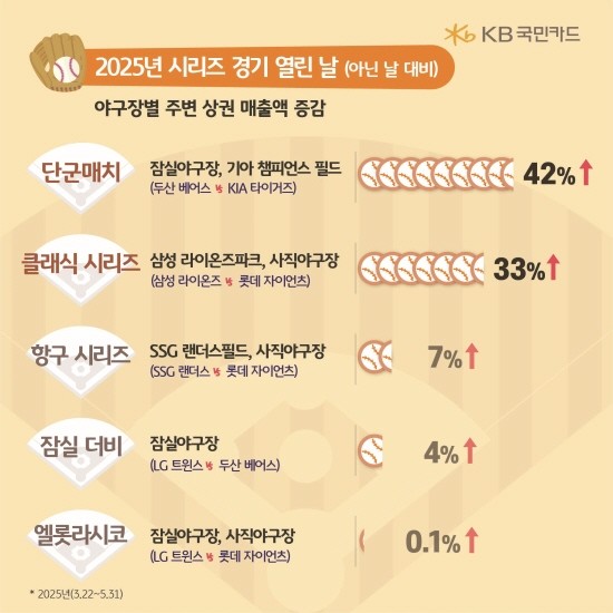 ▲2025년 시리즈 경기 열린 날(아닌 날 대비) 인포그래픽(사진=KB국민카드) |