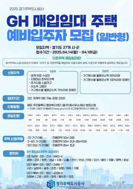 | ▲GH 매입임대주택 예비입주자 모집 포스터(사진=경기주택도시공사) |