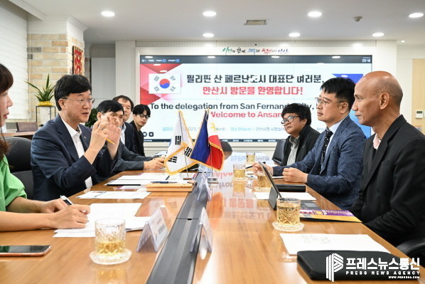 [프레스뉴스] 장현준 기자= 안산시(시장 이민근)는 지난 27일 필리핀 산페르난도시 사절단이 안산시청을 방문해 우호증진 협약서를 체결하고 양 도시 간의 교류 활성화 및 지속 가능한 협력 방안을 논의했다고 28일 밝혔다.