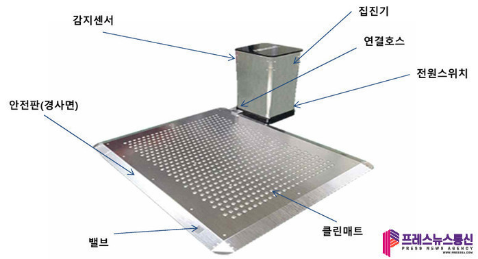 흡입매트는 이용객이 매트를 밟고 지나갈 때 바닥에 있던 먼지를 흡입하고, 내부의 여과 장치를 통해 분진을 걸러내는 방식으로 실내 공기질을 개선하는 기능을 수행한다.