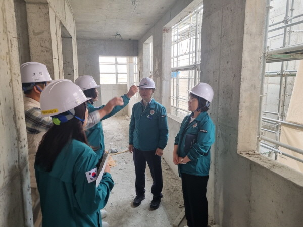 이번 점검은 부군수와 산업안전 전문가, 관련 부서 공무원 등 총 7명이 참여한 가운데 공사장 내 안전시설과 장비 관리 상태, 산업안전보건법 준수 여부 등을 중점적으로 점검했다.
