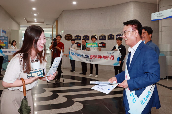 | ▲사천시 시장과 함께 하는 청렴캠페인(사진=사천시 제공) |