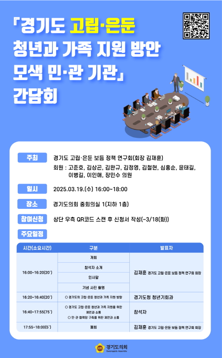 ▲경기도 고립·은둔 청년과 가족 지원 방안 모색을 위한 민관 기관 간담회 포스터(사진=경기도의회) |