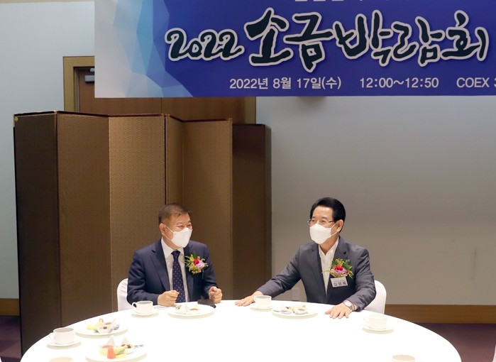 | ▲ 2022 소금박람회 참석, 왼쪽부터 강종만 영광군수, 김영록 전남도지사/영광군 제공 |