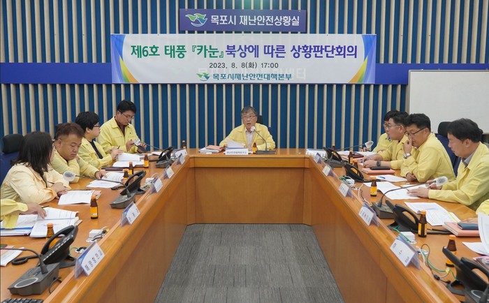 | ▲목포시가 제6호 태풍 ‘카눈’ 대비 상황판단회의를 개최하고 안전관리에 총력을 기울이고 있다.(사진제공=목포시) |