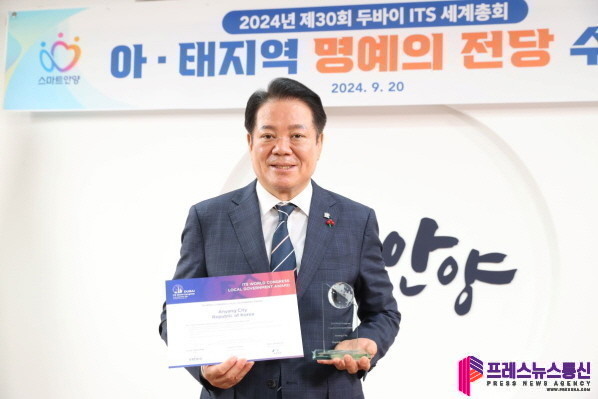 [프레스뉴스] 장현준 기자= 안양시가 지난 17일 오전 9시(현지시간) 아랍에미리트에서 열린 ‘제30회 두바이 지능형교통체계(ITS) 세계총회’에서 ‘지능형교통체계(ITS) 명예의 전당 아시아·태평양 지역 지자체 부문 공로상’을 받았다고 20일 밝혔다.
