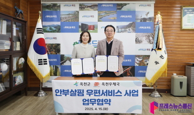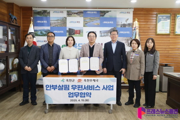 [프레스뉴스] 류현주 기자= 옥천군과 옥천우체국(국장 성미수)이 15일 복지 사각지대를 해소하고 기관 간 복지 안전망을 구축하기 위해 ‘고독사 예방을 위한 안부살핌 우편서비스’ 업무협약을 체결했다.