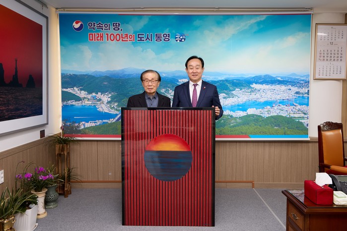 천영기 통영시장은“옻칠 회화 작품을 기증해 주셔서 감사드리며, 작품명처럼 초심을 잃지 않고 시정활동에 최선을 다하겠다”고 전했다.