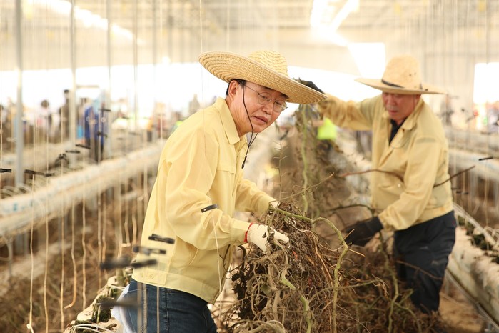 ▲나주시가 ‘7월 호우 피해’를 입은 세대에 재난지원금 지급을 완료했다. 사진은 윤병태 나주시장이 집중호우로 피해를 입은 농가에서 복구 작업을 돕고 있는 모습./나주시 제공 |