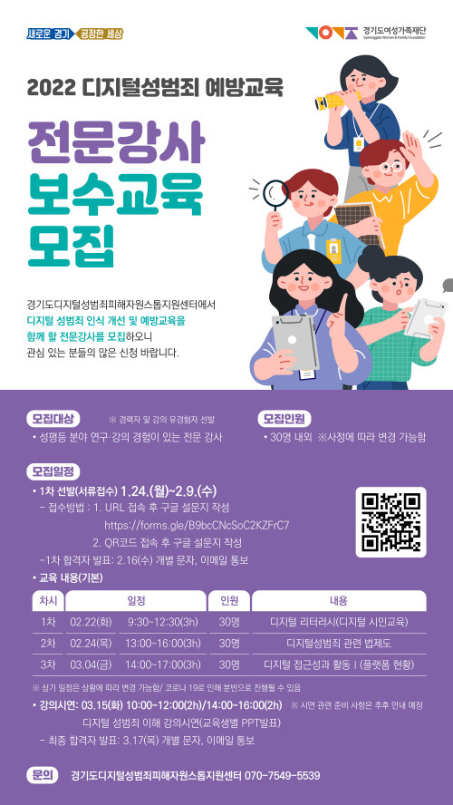 | ▲ 2022 디지털성범죄 예방교육 전문강사 보수교육 모집 포스터(사진=경기도여성가족재단) |