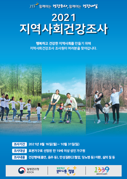 정형섭 시 건강체육국장은 “코로나19 4단계 사회적 거리두기 지속으로 건강조사에 어려움이 많은 상황이지만, 조사원 교육과 방역수칙을 철저히 준수해 조사를 실시할 예정이며, 이번 조사를 통해 인천시민의 건강통계를 생산, 분석함으로써 시민 건강증진에 이바지할 것으로 기대한다”며 표본가구에 선정된 시민들의 조사 협조를 당부했다.