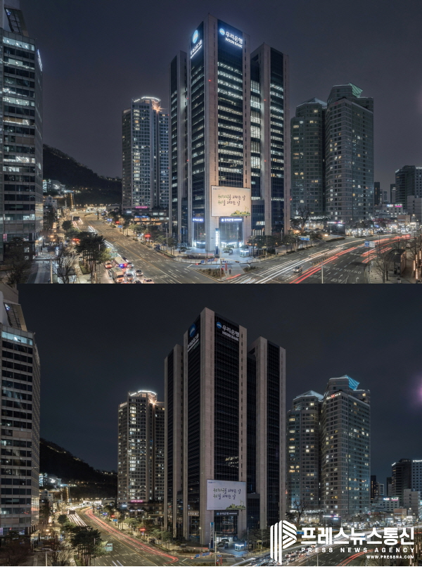 | ▲ 우리금융그룹 ‘어스아워 캠페인’ 소등 전·후 모습(사진=우리금융그룹) |