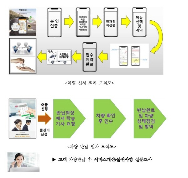 | ▲ 택배차 사고·고장 시 차량 대여 서비스 순서도(사진=경기도) |