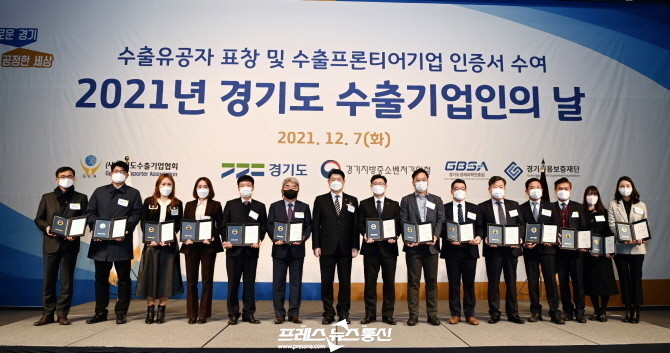 [프레스뉴스] 김대일 기자= 경기도는 7일 라마다 프라자 수원 호텔에서 열린 ‘2021 경기도 수출기업인의 날 행사’에서 코로나 시대에 지혜를 모아 수출성과 창출과 지역경제 활성화에 기여한 도내 수출기업 14개사를 표창했다.