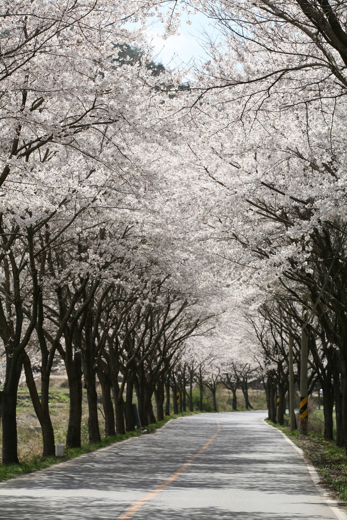 이곳은 1980년부터 심기 시작한 4,000여 그루의 왕벚나무가 5.5km에 걸쳐 ‘왕벚나무터널’을 이루며 장관을 연출하는 곳이다.