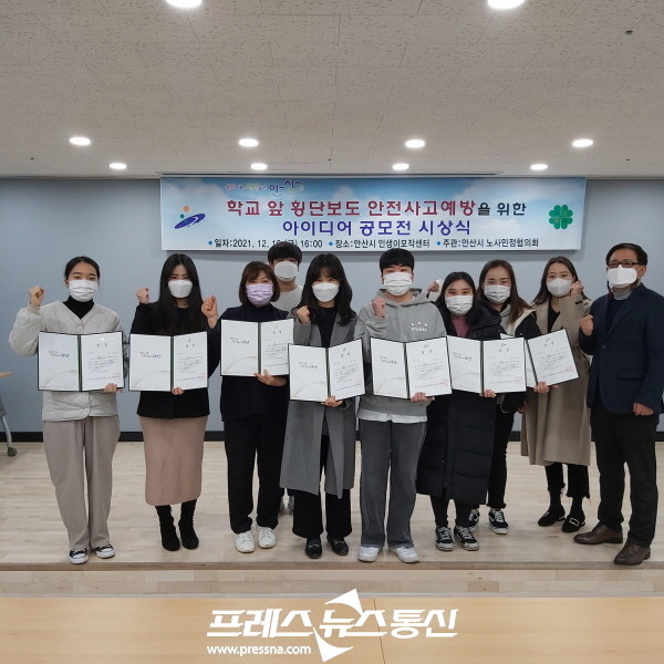 [프레스뉴스] 장현준 기자= 안산시노사민정협의회(위원장 윤화섭 안산시장)는 ‘학교 앞 횡단보도 안전사고예방을 위한 아이디어 공모전’ 시상식을 열고 입상자를 축하했다고 12일 밝혔다.