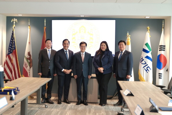 | ▲(사진 왼쪽부터) 이원성 경기도 체육회장, 토드 글로리아 샌디에이고 시장, 김동연 경기도지사, 노라 바르가스 샌디에이고 카운티 의장, 임병택 시흥시장이 기념 촬영을 하고 있다.(사진=시흥시) |